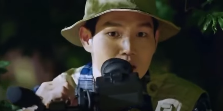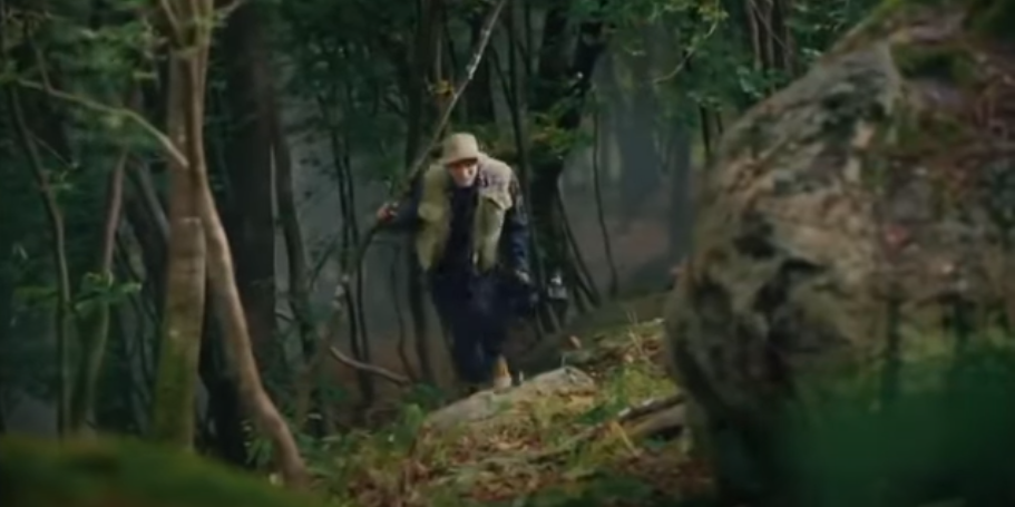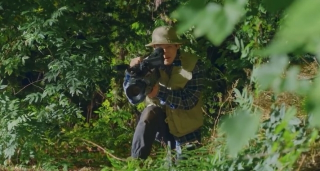 한 남성이 전문가 포스를 뿜어내는 커다란 카메라를 들고 산을 힘겹게 오르고 있네요